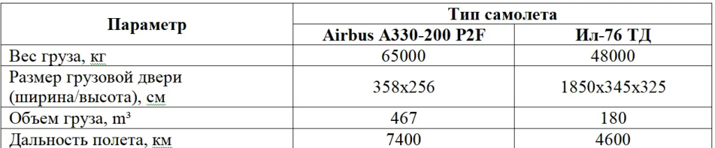 Краткая сравнительная таблица по грузовым самолетам Ил-76 ТД и Airbus A330-200 P2F