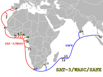Кабель SAT-3 является основным магистральным каналом передачи данных для стран Западной Африки. После его повреждения государства были вынуждены прибегнуть к альтернативным способам связи с внешним миром, например, через спутник.