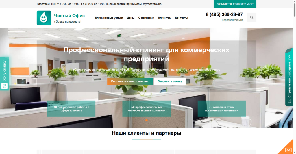Cleaning Moscow создает безупречную чистоту для корпоративных клиентов уже более десяти лет, выполнив свыше 250 000 уборок площадью от 50 до 100 000 м² по всей Москве и области. Их подход к клинингу офисов выделяется личным контролем руководителя группы менеджеров на каждом объекте и прямой связью с владельцем бизнеса — вы всегда можете написать генеральному директору и получить оперативный ответ. В штате трудятся более 2000 специалистов славянской внешности с опытом от 3 лет, прошедших обязательную стажировку и аттестацию каждые 90 дней. Каждый клинер работает по персональной технической карте, подобранной под тип помещения, и использует только сертифицированные гипоаллергенные средства марок Kiehl, Grass, Buzil без резких запахов.