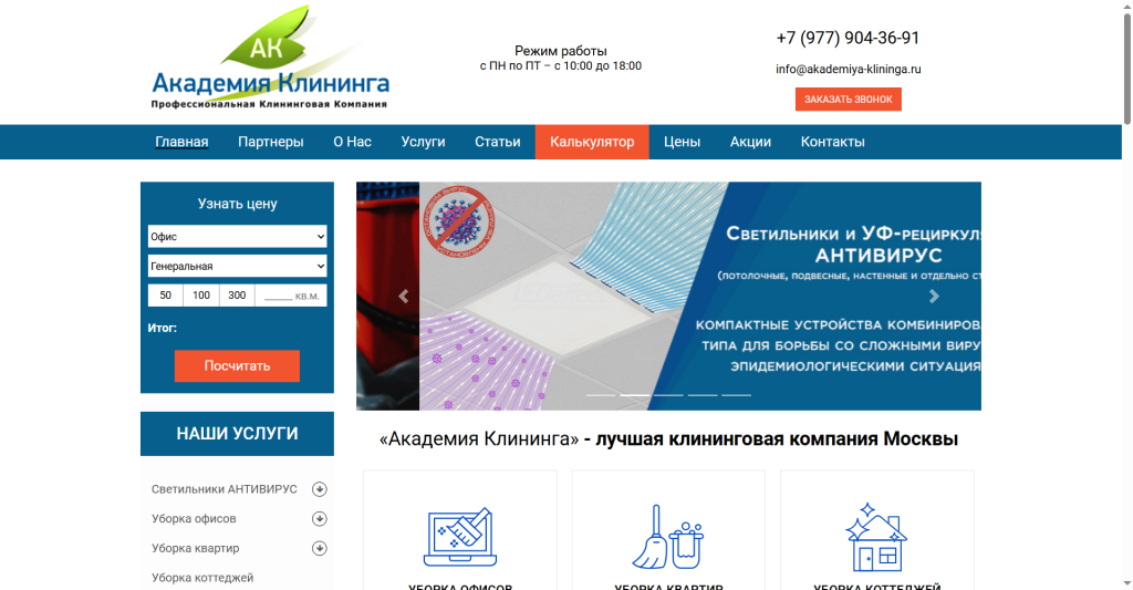 «Академия Клининга» более 7 лет создает идеальное рабочее пространство для компаний Москвы — от стартапов до крупных корпоративных центров. Профессиональная уборка офисных помещений здесь рассматривается как залог продуктивности команды и безупречной репутации бизнеса перед клиентами. Компания использует только сертифицированную гипоаллергенную химию, безопасную для людей и офисной техники, а все клинеры являются штатными сотрудниками, прошедшими обучение и проверку службы безопасности. Работа ведется 24/7 — уборку можно заказать утром, вечером, ночью или в выходные, чтобы не мешать рабочему процессу. Специалисты умеют быть незаметными при работе в действующих офисах, но при этом незаменимыми в обеспечении чистоты. Для удобства клиентов доступна выездная консультация специалиста или личная встреча в офисе компании.
