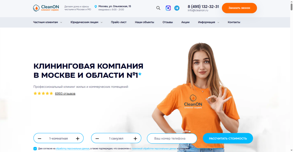 CleanON имеет впечатляющую базу из 6000+ реальных отзывов клиентов. Ежедневно команда выполняет около 10 000 уборок по всей столице, включая офисные помещения любой площади и сложности. Профессиональный клининг офиса длится 5–8 часов и включает комплексную очистку всех зон — от рабочих мест до санузлов и кухонных зон, с использованием сертифицированных чистящих средств Pro-brite и Kiehl.