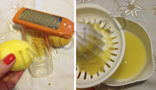 С лимона цедру натирать очень тонко, только жёлтую часть.