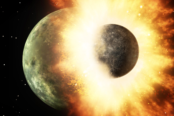 Гигантское столкновение двух небесных тел, возможно, породившее спутник Земли Луну. NASA/JPL-Caltech